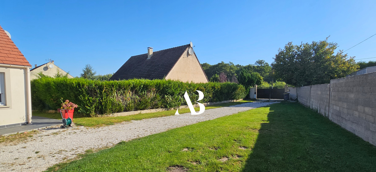 Vous bénéficiez d’un garage double, d'une terrasse et d'une grande cour à l'avant du pavillon. (idéal pour stationner les véhicules).