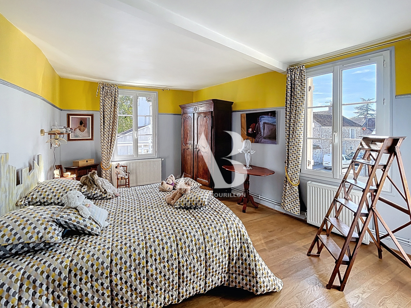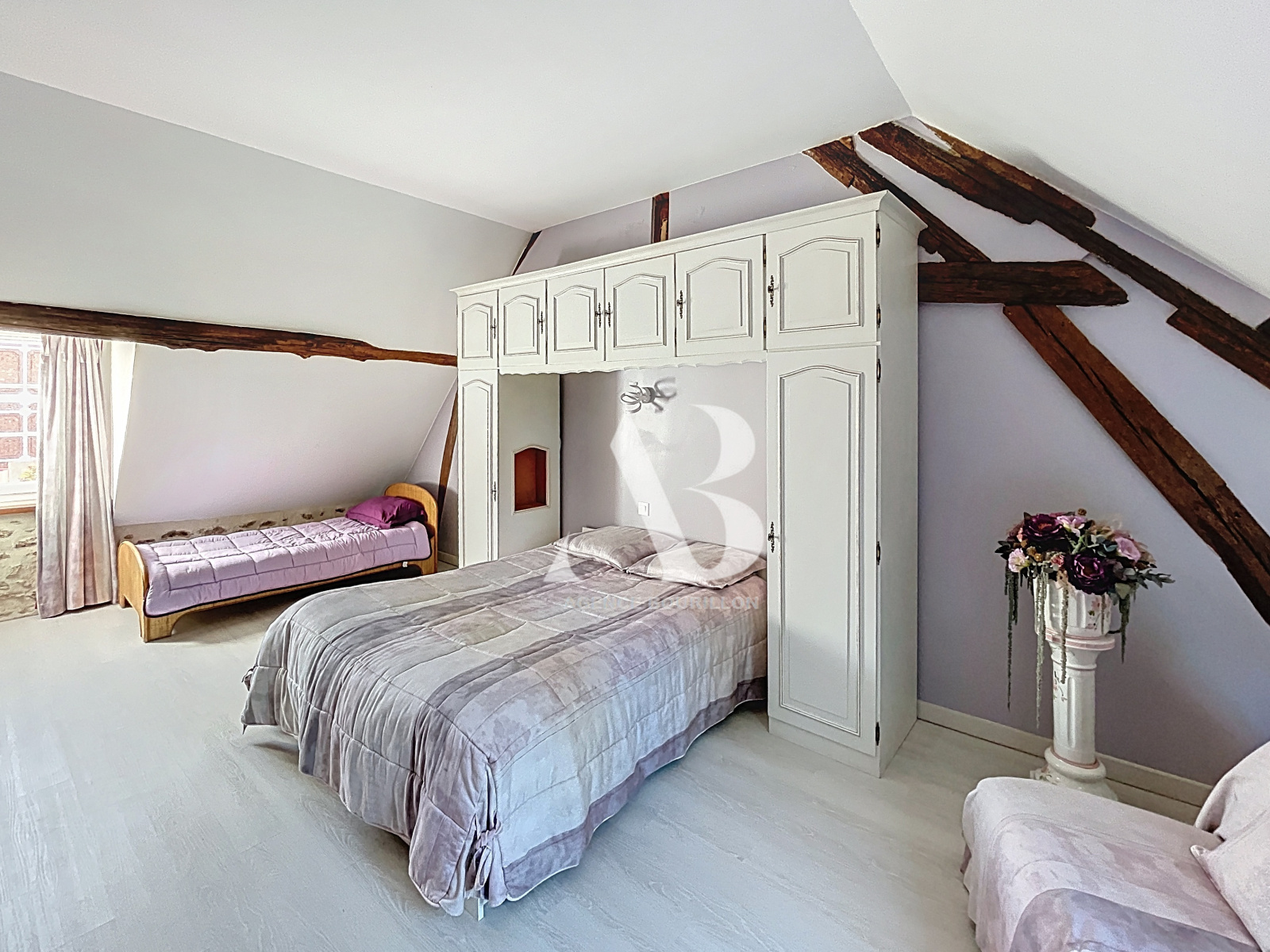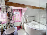 À l'étage (aile droite) : vous profitez de deux chambres dont une de 19m², un bureau et une salle de bains avec baignoire et douche..
