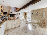 Au rez-de-chaussée (aile droite) : une vaste entrée avec placards, une cuisine spacieuse de plus de 26 m² avec cheminée insert, un WC indépendant, un séjour de plus de 40m² avec cheminée insert, une salle d'eau avec WC, une buanderie et un atelier.
